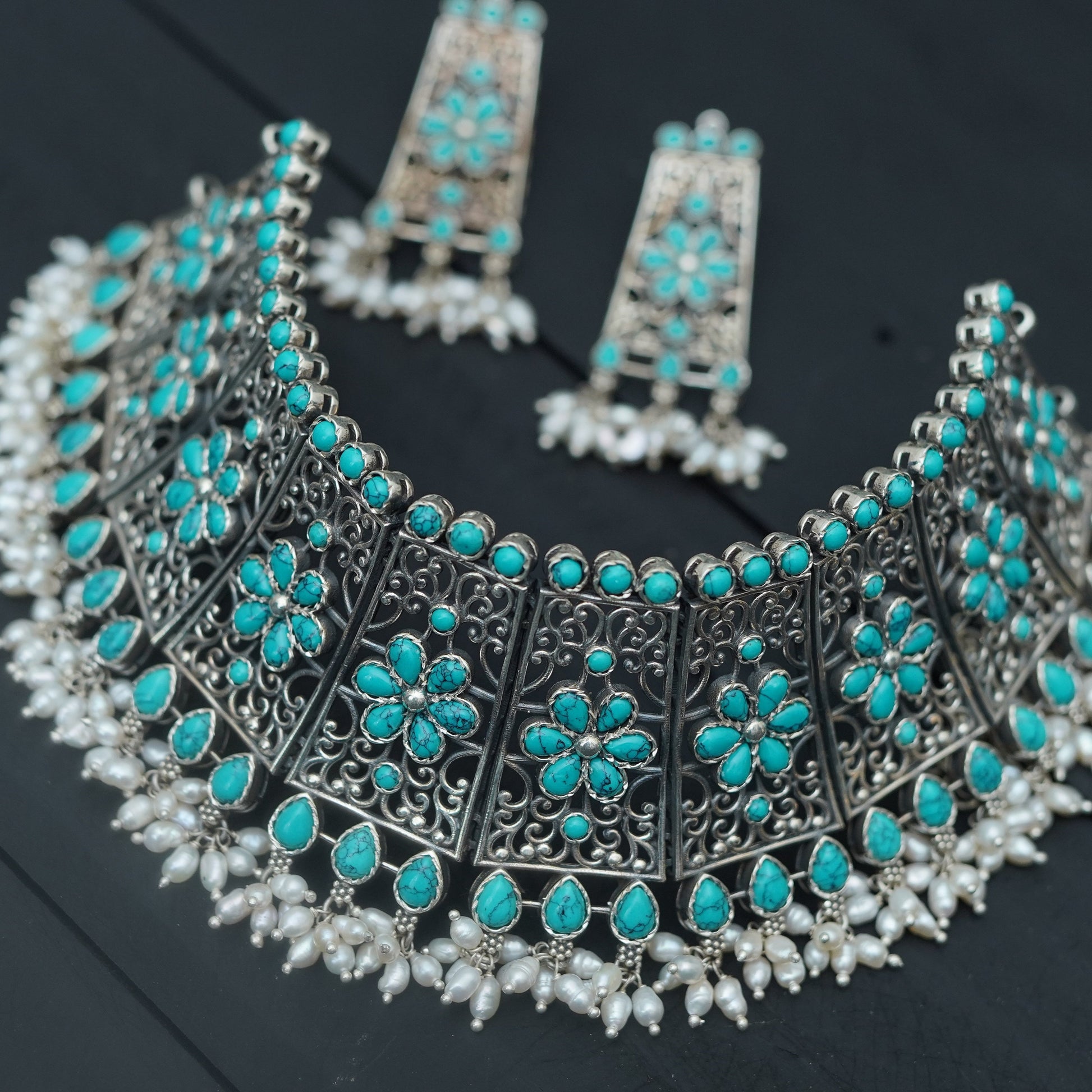 TURQUOISE CHOKER SET-ER1848,CH1068