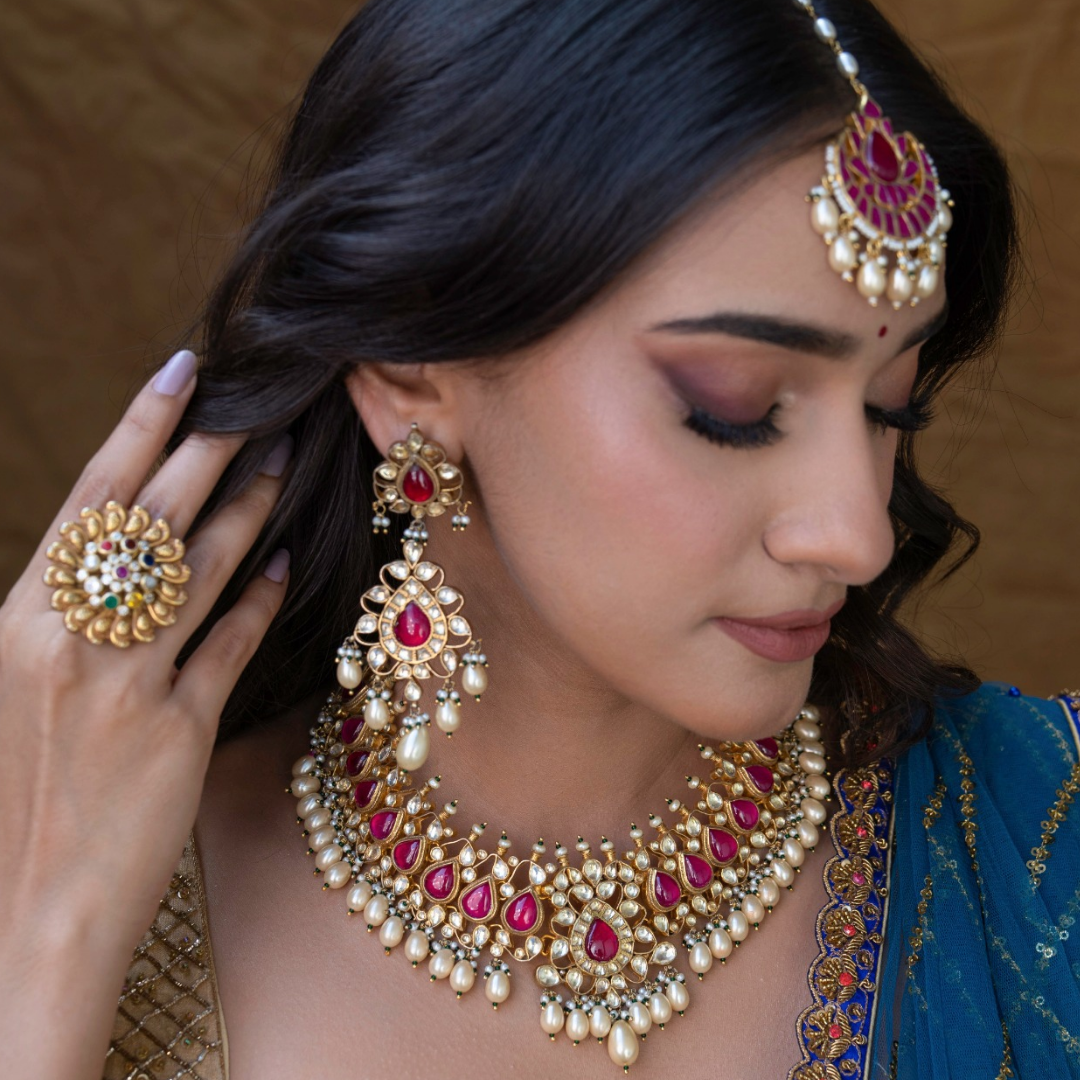 PINK PEARL DROP PARTY WEAR NECKALCE-NEK1119