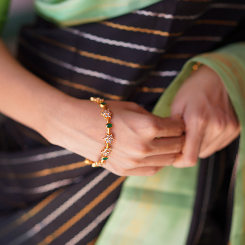 GREEN STONE ZIRCON FLOWERS BANGLE-BN1112