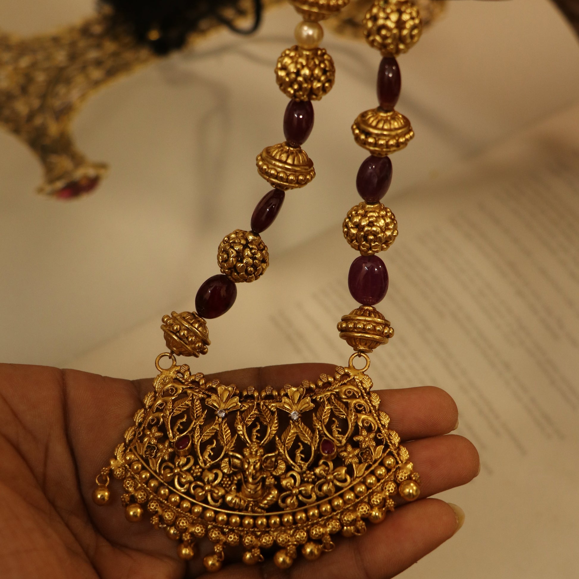 Hangings or bead drops: gold balls.